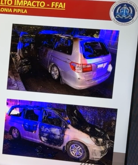 En conferencia de prensa, a fiscal general del estado, Doctora, Ma. Elena Andrade Ramírez, informó que el 30 de enero pasado se localizó, en la calle San Quintin, una vagoneta gris marca Honda, con placas de California, en cuyo interior estaban cinco cuerpos calcinados que fueron identificados posteriormente.