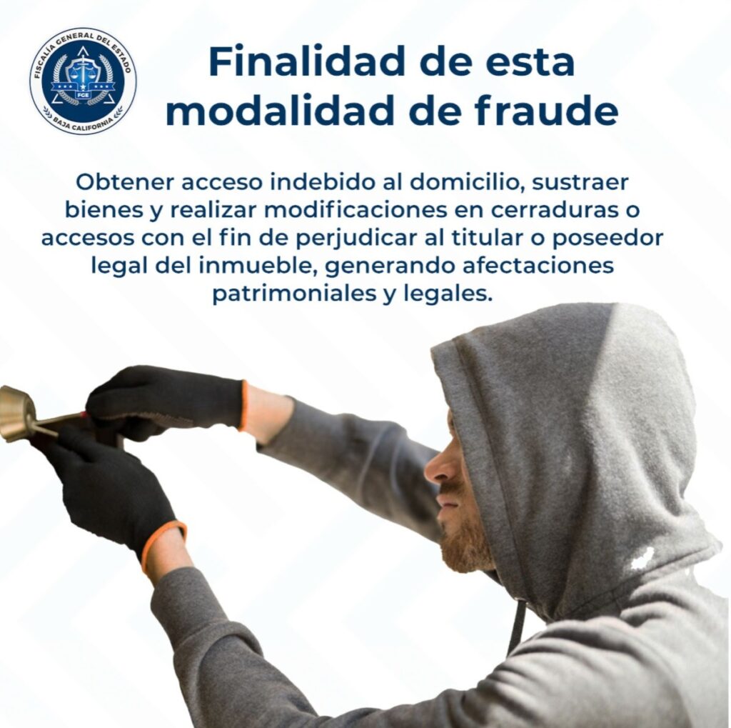 TIJUANA, BC.- La fiscalía general del Estado lanzó una alerta a la ciudadanía tras detectar una nueva modalidad de fraude mediante la cual delincuentes utilizan, sin su conocimiento, a trabajadores de actividades lícitas como guardias de seguridad privada y cerrajeros para ingresar a inmuebles y cometer ilícitos.