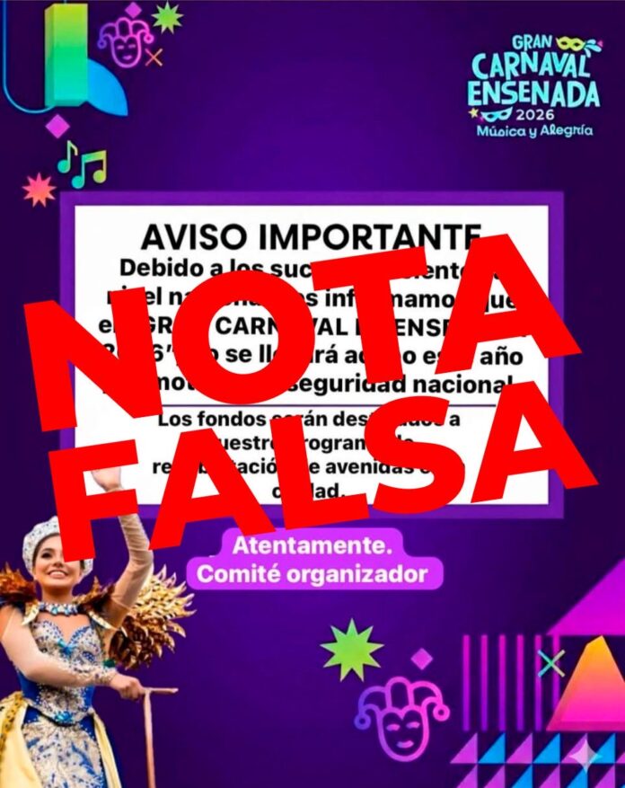 Las autoridades municipales reiteraron que el Carnaval sigue en pie y que la organización continúa conforme al calendario establecido. Asimismo, exhortaron a la ciudadanía a informarse únicamente a través de los canales oficiales, la Fan Page del Gobierno de Ensenada y la Fan Page del Gran Carnaval de Ensenada.