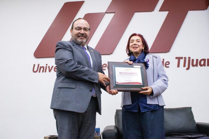 El rector, Mtro. Salvador Morales Riubí le hizo entrega de un reconocimiento a nombre de la comunidad universitaria por empoderar a las mujeres y ser un ejemplo para ellas.