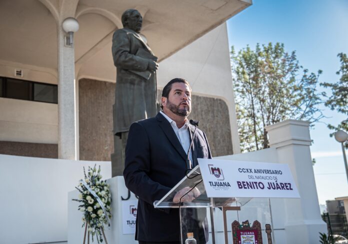 Durante la ceremonia, que se llevó a cabo en la explanada del Monumento al Benemérito de las Americas, en el Centro Universitario de la salud de la Universidad Autónoma de Baja California (UABC), el alcalde de Tijuana destacó la relevancia de honrar la vida y obra de uno de los líderes más importantes en la historia de México.