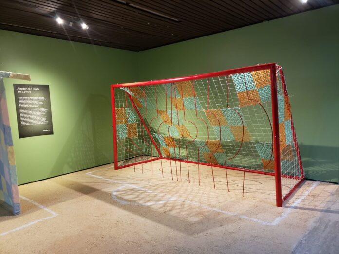 Sobre la exposición, refirió que incorpora elementos simbólicos del futbol y la migración, transformando espacios en escenarios de encuentro comunitario: “Se van a convertir en escenarios… en donde vamos a meter gol, no con los pies, pero sí con el corazón”, señaló la artista, destacando el papel emocional y social del deporte.