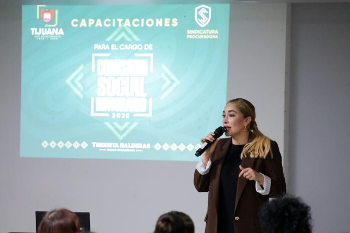 Tijuana.- La Síndica Procuradora, Teresita Balderas Beltrán, encabezó una capacitación dirigida a 115 ciudadanas y ciudadanos aspirantes a Comisarios Sociales Honorarios 2026, con el propósito de fortalecer la participación ciudadana y promover la vigilancia activa en la gestión pública.