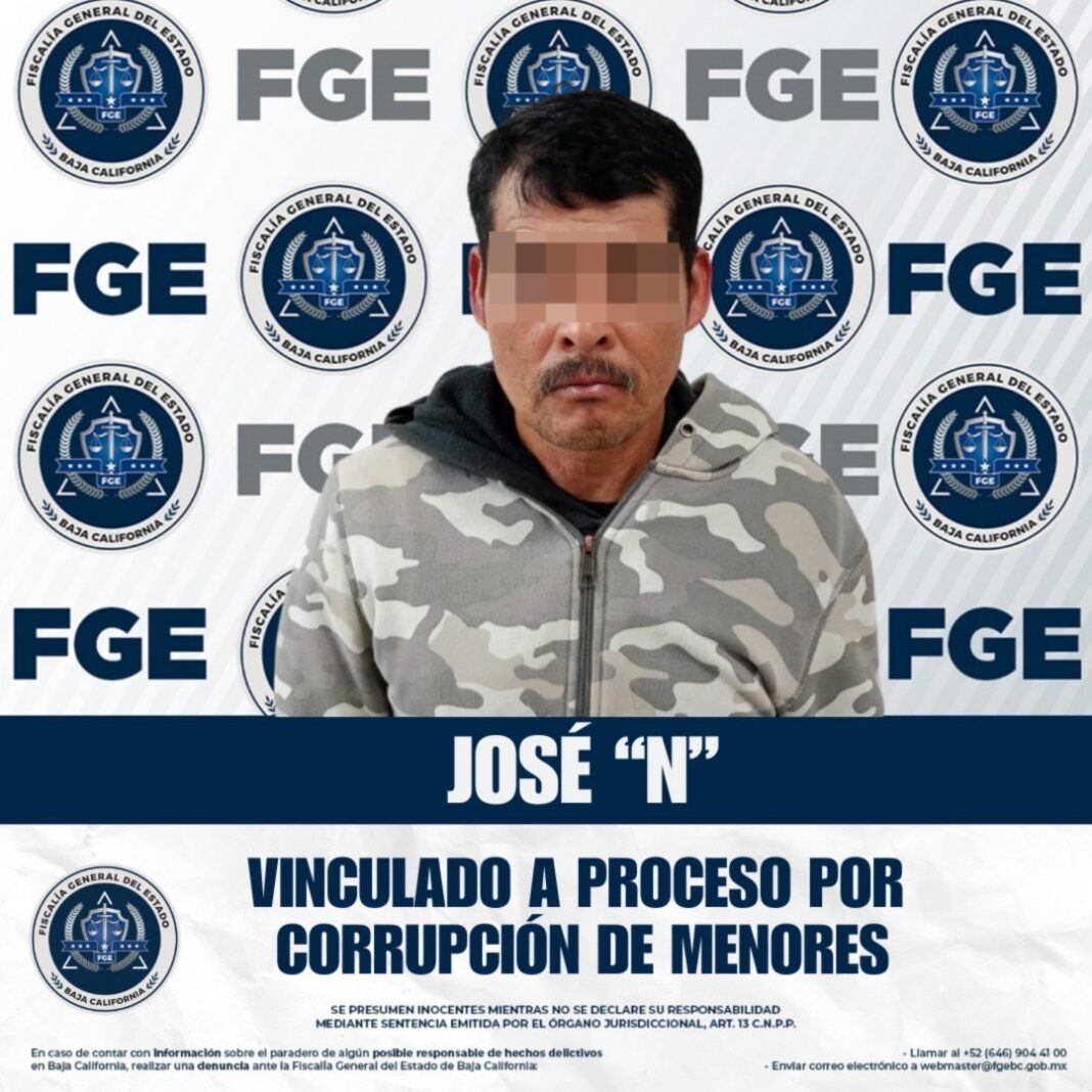 ENSENADA, BC.- La Fiscalía Regional de Ensenada logró la vinculación a proceso de José “N”, de 50 años de edad, por su presunta responsabilidad en el delito de corrupción de menores. Asimismo, el órgano jurisdiccional impuso la medida cautelar de prisión preventiva, tras valorar los datos de prueba y argumentos presentados por el Ministerio Público.