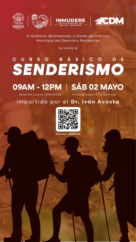 Ensenada, B.C.- Con el objetivo de promover estilos de vida saludables y el contacto responsable con la naturaleza, el Gobierno de Ensenada invita a la comunidad a participar en el Curso Básico de Senderismo, como parte del Programa de Capacitación Deportiva Municipal.
