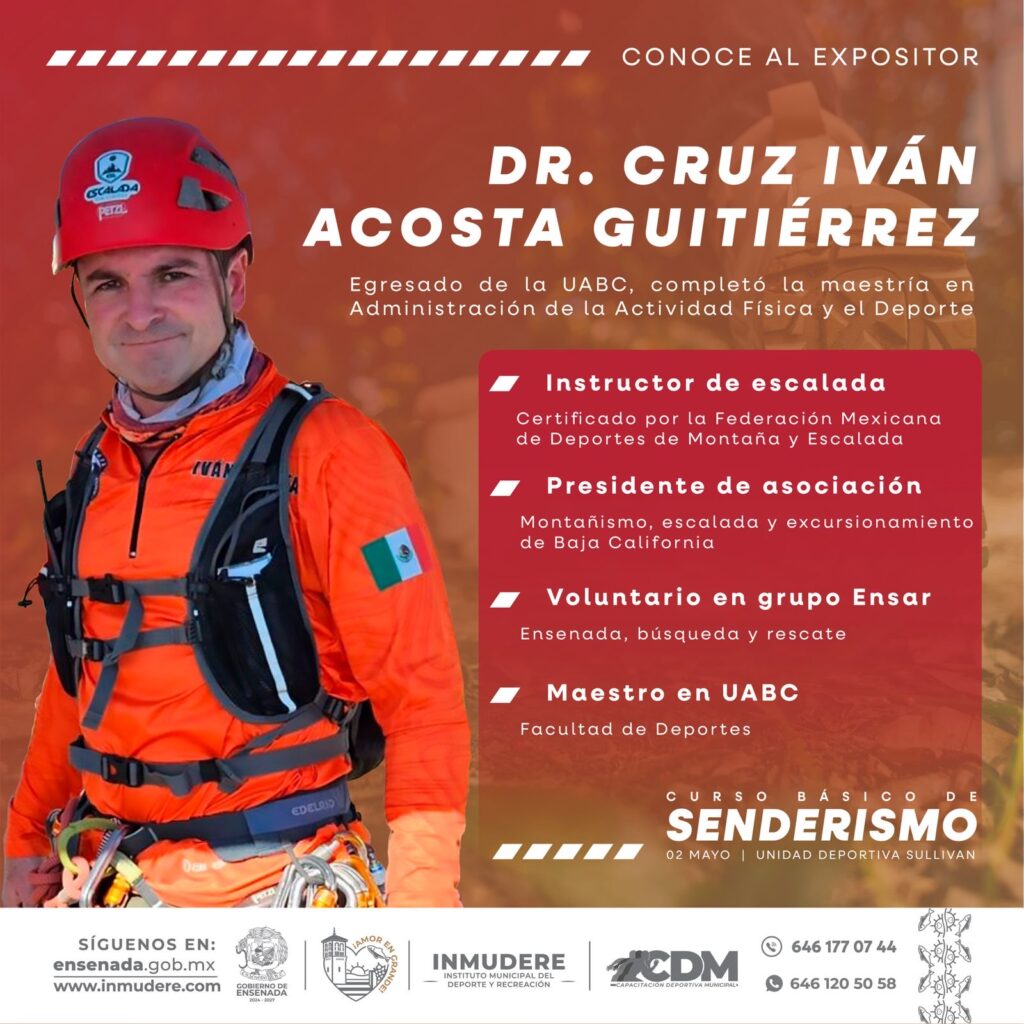 El curso será impartido por Cruz Iván Acosta Gutiérrez, especialista en actividad física y deporte, con amplia experiencia en montañismo, escalada y rescate, quien brindará herramientas básicas para practicar senderismo de forma segura, responsable y consciente del entorno.
