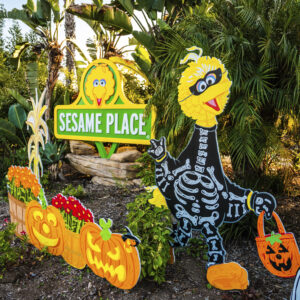 Búsqueda del tesoro con el espantapájaros de Sésamo: los visitantes pueden recoger una hoja de búsqueda del tesoro de cortesía en Guest Services y disfrutar de encontrar espantapájaros por todo el parque. ¡Completa la búsqueda del tesoro para reclamar un premio de Halloween!