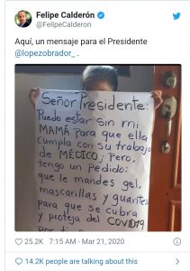 Lo que Calderón no sabía al compartir la fotografía es que no se trata de México, la imagen fue publicada en la República Dominicana y es un mensaje de una niña para el presidente de ese país.