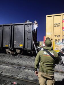 HERMOSILLO.- El Instituto Nacional de Migración (INM), en conjunto con la Secretaría de la Defensa Nacional (Sedena), la Guardia Nacional (GN) y la empresa Ferrocarriles de México (Ferromex), realizó el rescate humanitario y verificación migratoria de un grupo de personas que fue localizado en las góndolas de un tren en los patios del ferrocarril en Empalme, Sonora.