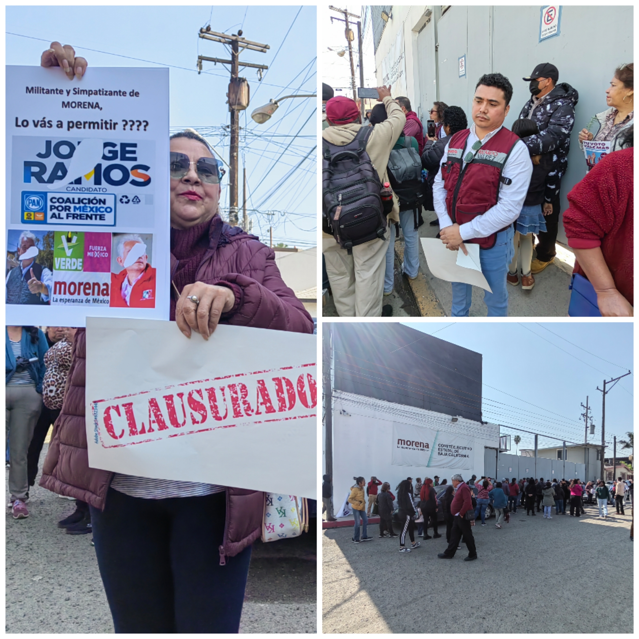 TIJUANA.- Tras afirmar que nunca fueron consultados para las encuestas en las que de definió el candidato a la alcaldía de Tijuana y a diputados locales, militantes del Partido MORENA se manifestaron en la sede de ese partido en Tijuana.