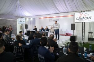 El vicepresidente regional de CANACAR, Israel Delgado Vallejo durante su intervención resaltó la importancia del gremio para la economía, donde 38 mil camiones circulan en el estado, 18 mil de ellos en Tijuana, de ahí que busquen mantener ese diálogo abierto con la autoridad.