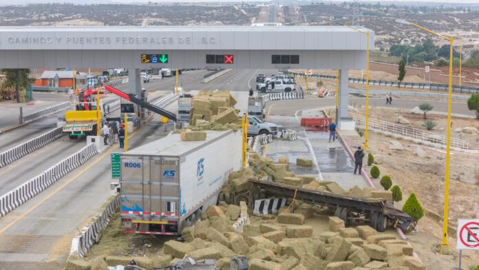 TECATE.- Un tráiler se impactó contra al menos cinco vehículos en la caseta de cobro de El Hongo, en la carretera Mexicali–Tecate, causando varias lesiones y el cierre total de la autopista en ambos sentidos.