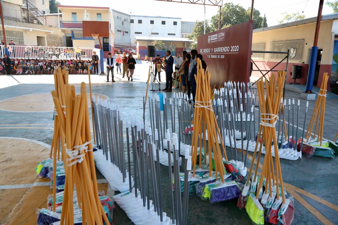TIJUANA.- El programa de limpieza “Ríe, Riendo y Barriendo 2020” será llevado a las escuelas municipales de la ciudad dando arranque este viernes 7 de Febrero en la Escuela Primaria Club de Leones dónde fueron entregados alrededor de 750 escobas y recogedores para niños de primero a sexto año.