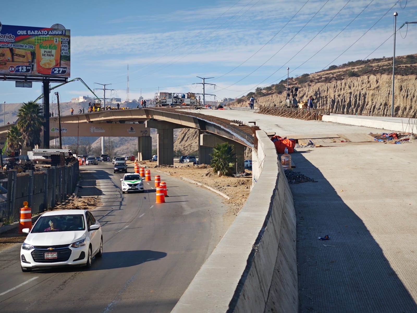 TIJUANA.- La Secretaría de Infraestructura (SIDURT) informa que avanza la colocación de losa de concreto e instalación de barandales en el paso superior del Nodo Morelos.