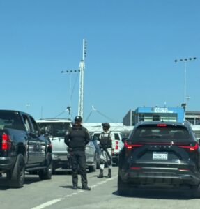 Tijuana, BC.- La Secretaría de Seguridad y Protección Ciudadana (SSPC) y el Ejército Mexicano intensificaron este sábado la vigilancia en la Garita Internacional de San Ysidro, con el despliegue de elementos federales y soldados fuertemente armados, como parte de una estrategia para contener la delincuencia en la frontera Tijuana-San Diego.
