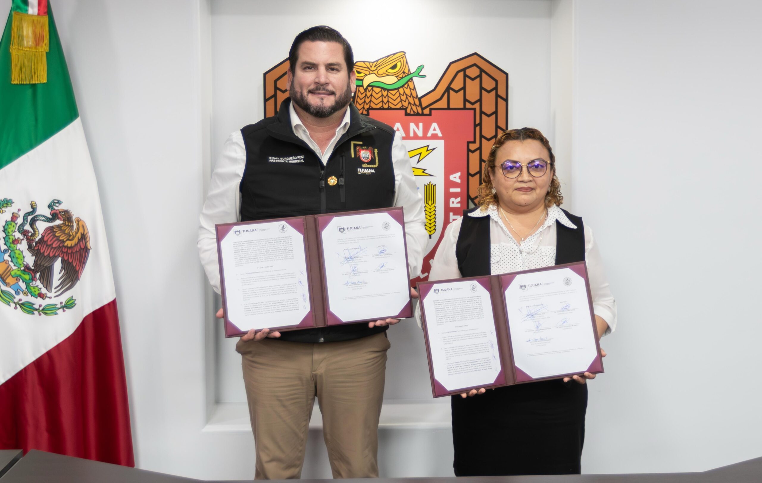 TIJUANA, BC.- En seguimiento a la visión de un gobierno de carácter humanista, el presidente municipal, Ismael Burgueño Ruiz, encabezó la firma del Convenio de Vinculación Institucional entre el XXV Ayuntamiento de Tijuana y el Centro Educativo California, A.C., con el objetivo de fortalecer la formación profesional de los estudiantes y promover el desarrollo académico y laboral de las y los trabajadores del Ayuntamiento y sus familias.