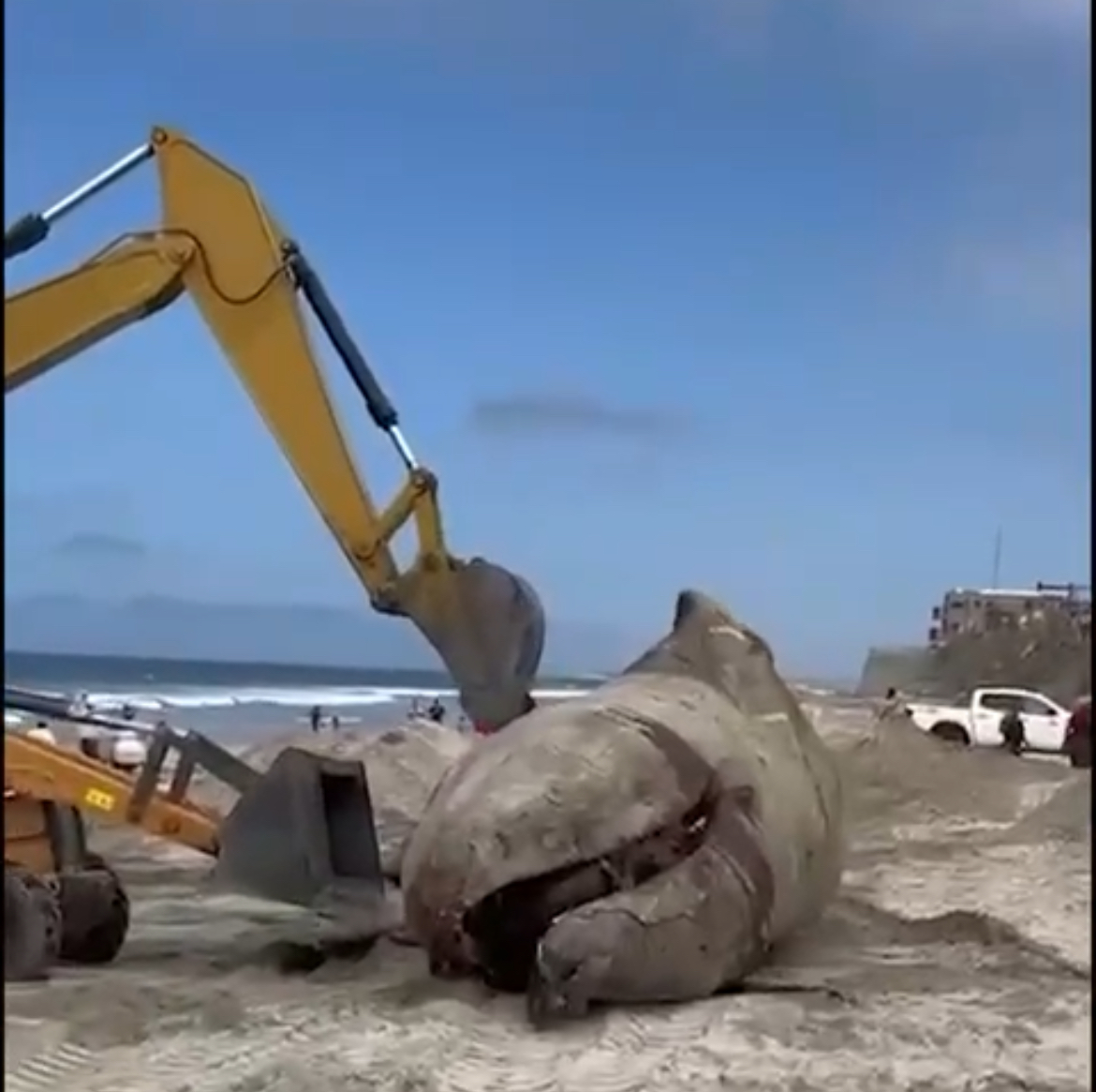 Sepultan a ballena muerta en Playas de Tijuana
