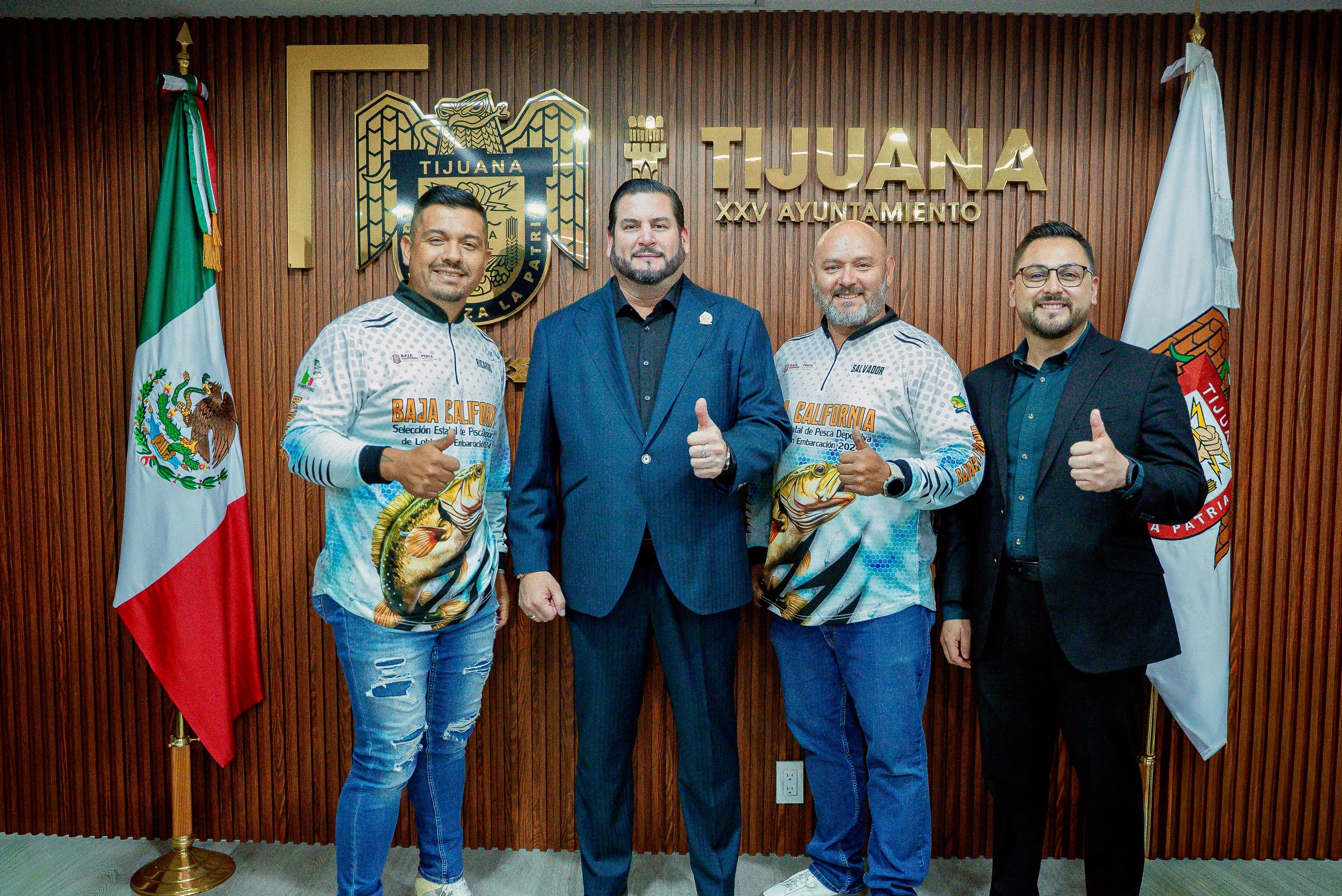TIJUANA.- El presidente municipal, Ismael Burgueño Ruiz, recibió este viernes, en Palacio Municipal a los seleccionados nacionales del equipo mexicano de pesca, quienes representarán a México en el XIX Campeonato Mundial de Pesca de Lobina, que se llevará a cabo en Sudáfrica 2025.