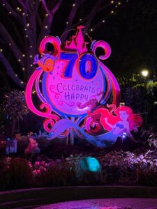 El parque está vestido de gala: medallones conmemorativos, esculturas coloridas, iluminación especial y productos exclusivos como orejas, ropa, tazas y más. ¡Todo diseñado solo para este 70.º aniversario!